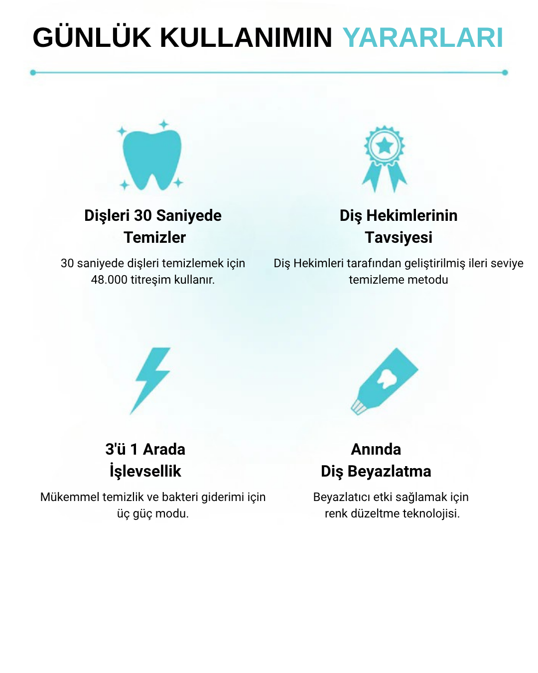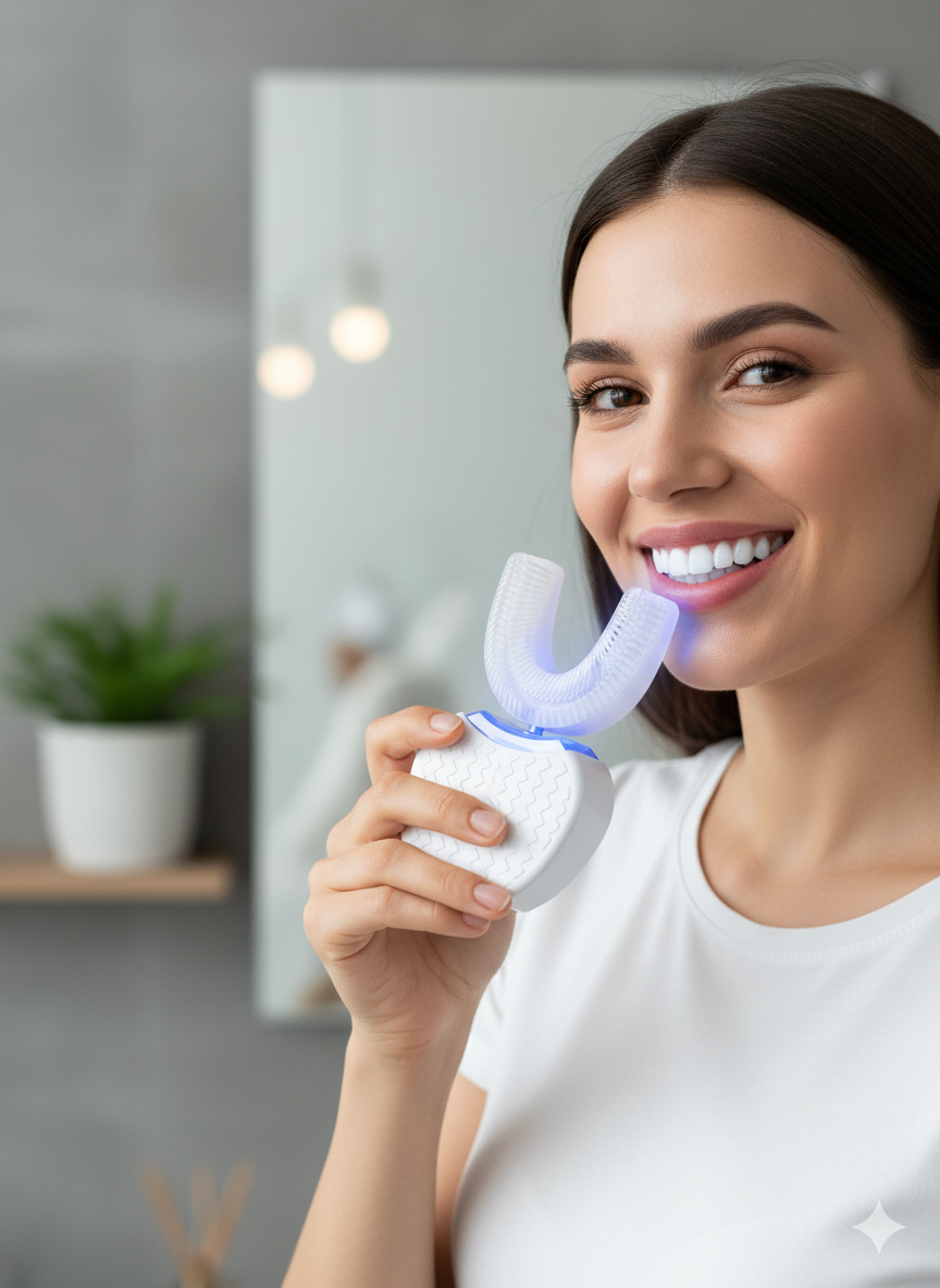 Dişlerinizi sadece 30 saniyede etkili bir şekilde temizleyin! Kablosuz, taşınabilir ve şarj edilebilir U-şekilli diş fırçası ile plak ve bakterilere veda edin.